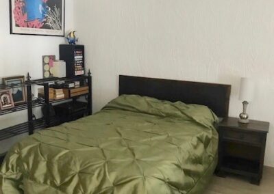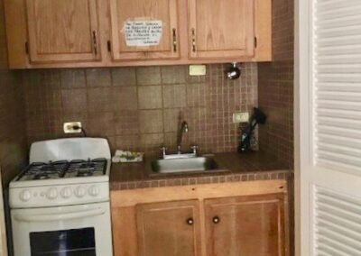 This adorable studio features separate living and sleeping areas, a small kitchenette and bar area for cooking and dining, and an updated bathroom.